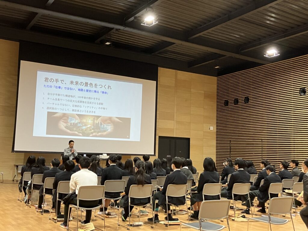 未来ある学生の皆さんに街づくりを通して少しでも建設業という仕事を知ってもらえたら幸いです。